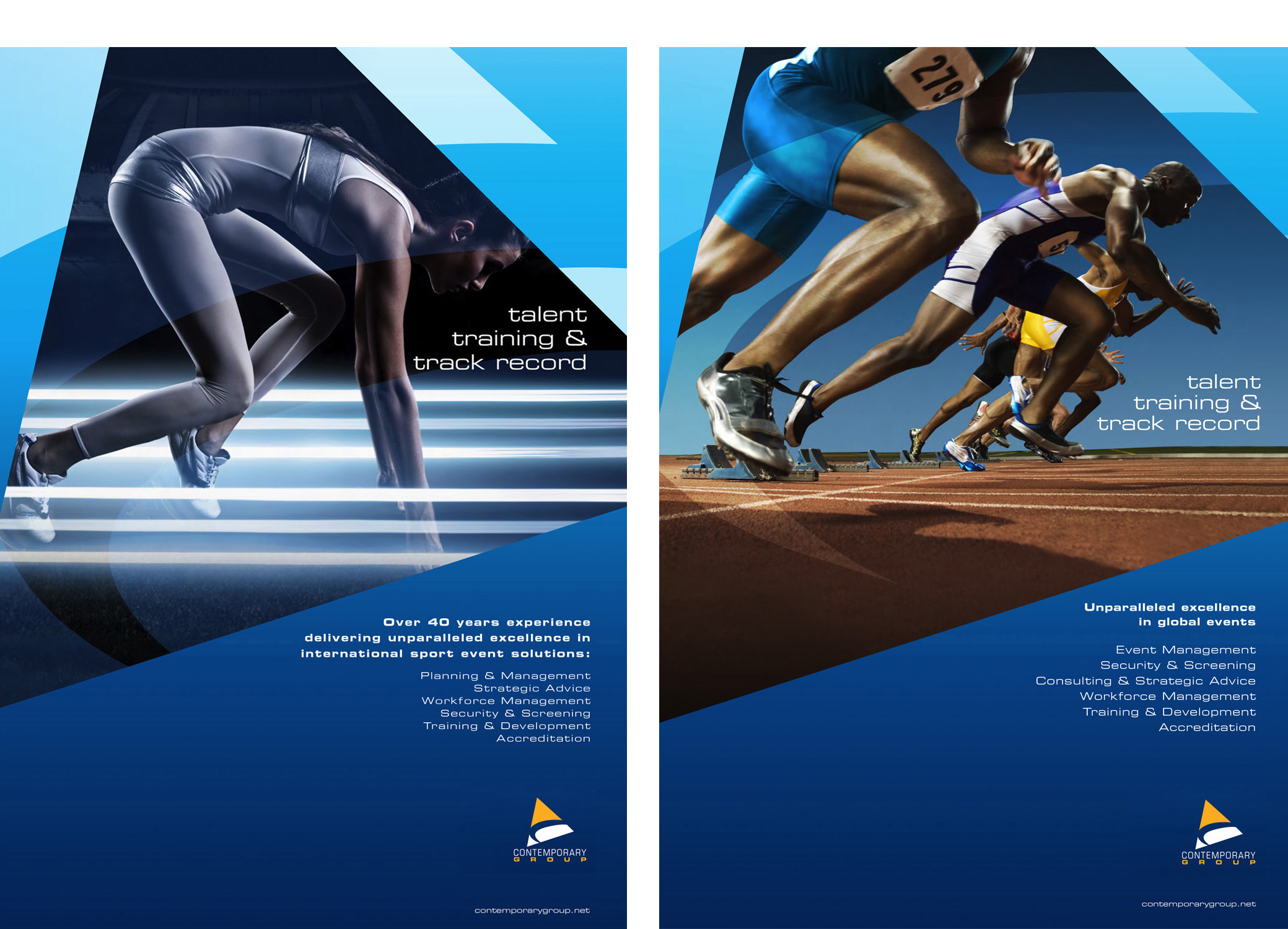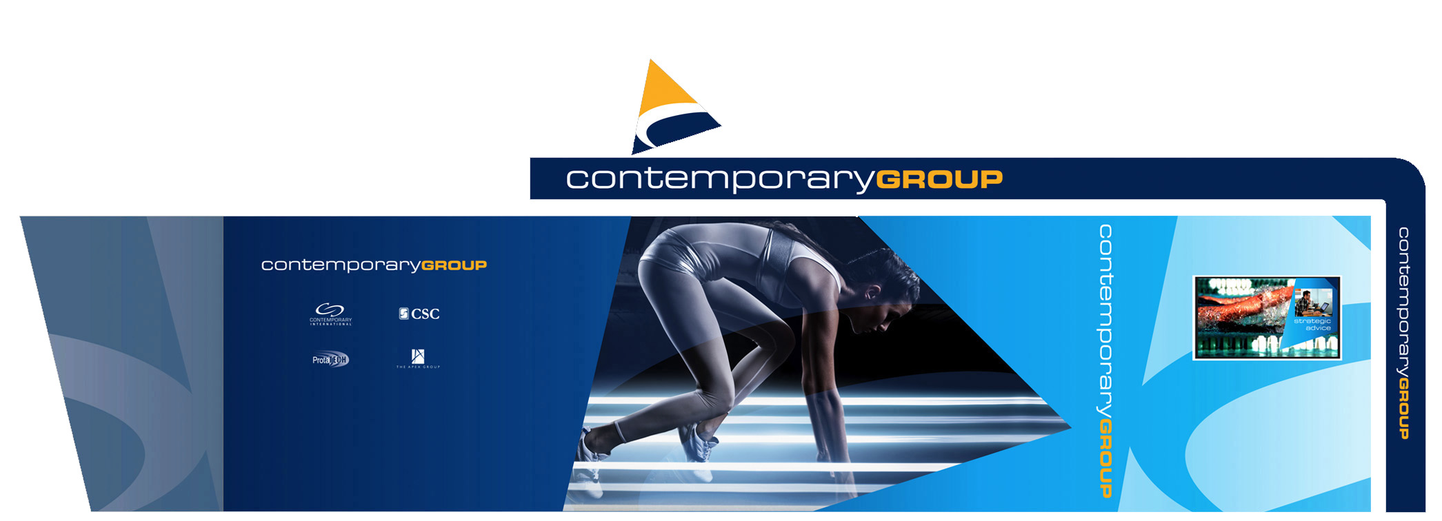The international umbrella organization representing their two global sport event management brands CSC & CI. The brand communications look and feel for identity standards and all graphic communications was developed for annual marketing exhibitions.